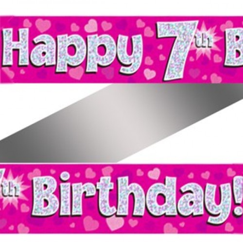 7th Birthday Pink Holographic Banner