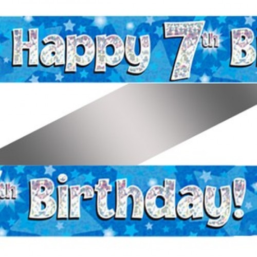 7th Birthday Blue Holographic Banner