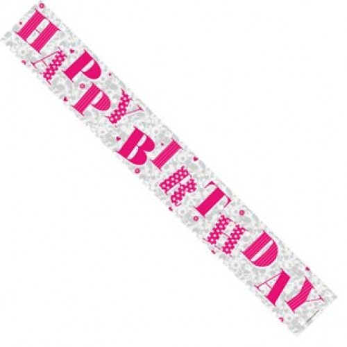 Pink Happy Birthday Holographic Foil Banner