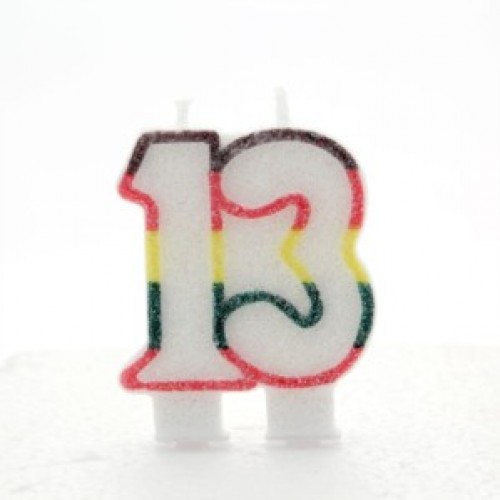 Multicoloured Striped Glitter Number 13 Candle